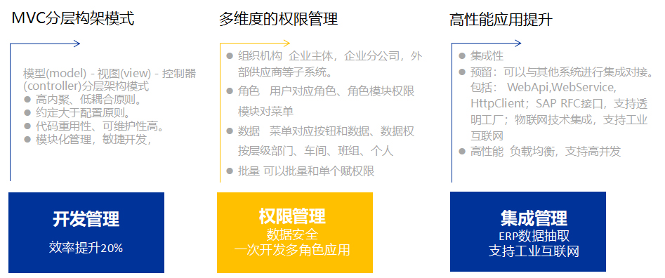 · 效率、質量提升 :數據集成,減少落地環節;流程審批、報警預警及時傳遞;客戶、生產、質量、物料、供方協同交互,效率高,數據準,提升工作效率和管理質量