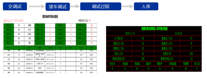 生產過程化、調試數據化派工等。例如調試派工從無到有,根據工時、車型等累計規則進行派工,省去人工計算派工人員,和電話通知等工作,減少業務往來過程中的各種錯誤,提升人工工作量的平衡度。